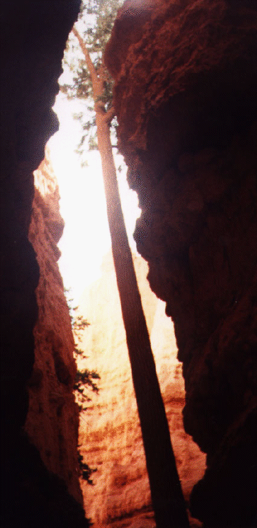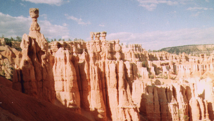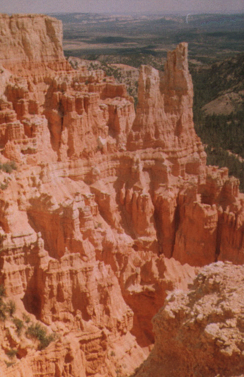 Bryce Canyon, back in Utah, was far more spectacular than the Grand Canyon. I took a short (1.6 mile round trip) hike in the Navajo loop trail and encountered amazing sights: trees growing at the base reaching for the sun and beautifully sculpted rock formations known as "hoodoos". This was yet another highlight in the trip. The "Hoodoos" were formed by the hardening of ancient sedimentation of a great seaway that extend into the area that is Bryce Canyon today. Deformation and uplift of these sediments due to movements further north-east in the Rockies, and differential erosion lead to the formation of vertical columns of these sedimented rock. Nature couldn't have a developed a better sculptor through design.