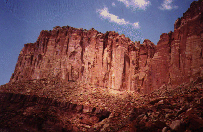 Capitol Reef National Monument was next. The reef is so named because of rock formations that resemble the U.S. Capitol and the Great Barrier Reef. While I think the reef part, is okay, the comparison to the U.S. Capitol is exaggerating things a bit: even Capitol Dome doesn't live to up to its description. But again, this was a place with great rock formations, especially the Waterpocket fold, "a giant, sinuous wrinkle in the Earth's crust, created by the same tremendous forces that built the Colorado Plateau 65 million years ago. The park "preserves the old and its spectacular eroded jumble of colourful cliffs, massive domes, soaring spires, stark monoliths, twisting canyons, and graceful arches."