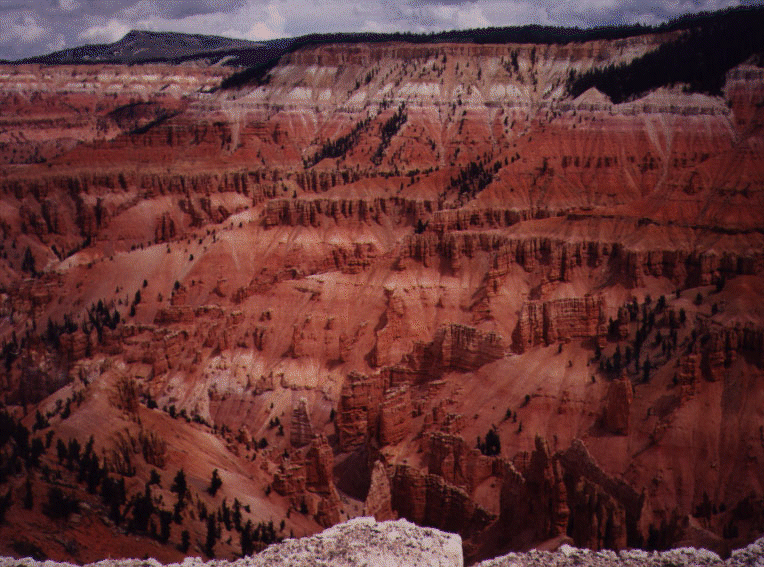 On August 17, we headed to Cedar Breaks, a great natural rock amphitheatre, "a spectacle of gigantic dimensions full of extraordinary forms wrapped in bold and brilliant colours." This is similar to Bryce Canyon, but is smaller in terms of area, though all the features are concentrated in a coliseum-like shape that is more than 2,000 feet deep and 3 miles in diametre. The intricate formations in the rock is definitely worth a visit.