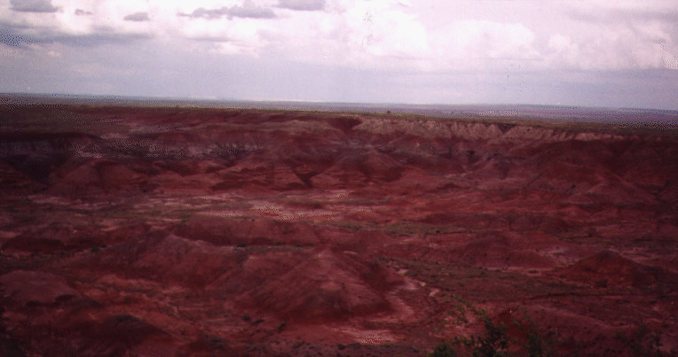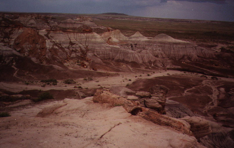 We though we'd have only three hours to see the Petrified forest, but it turned out that a lot of Arizona was on Daylight Savings Time, which meant that we had an extra hour to spare. The first sight we encountered was the painted desert. I took a hike through the badlands where I got see some petrified wood (created by the encasing of wood tissue with silica deposits) close up.